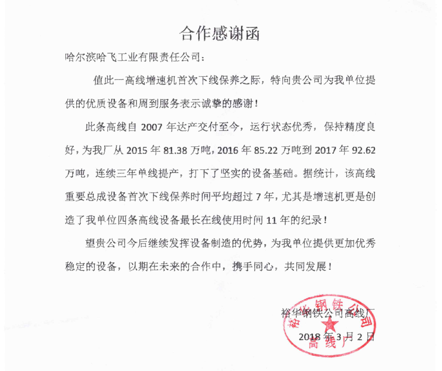 哈爾濱哈飛工業(yè)有限責任公司旗下的機電設備制造產(chǎn)業(yè)是目前國內規(guī)模大、專業(yè)的高速線材軋機和棒材軋機整機及備件的生產(chǎn)制造企業(yè)。公司現(xiàn)坐落于哈爾濱市平房區(qū)汽車零部件工業(yè)園B區(qū),占地面積30000多平方米?,F(xiàn)有員工近550人,其中具有中高級職稱的研發(fā)及工程技術人員100余人。 公司曾獲得冶金部授予的“高線軋機設備優(yōu)單位”稱號、國家技術進步二等獎等獎項,公司生產(chǎn)的十八項高線軋機重要部件通過了技術鑒定... +MORE